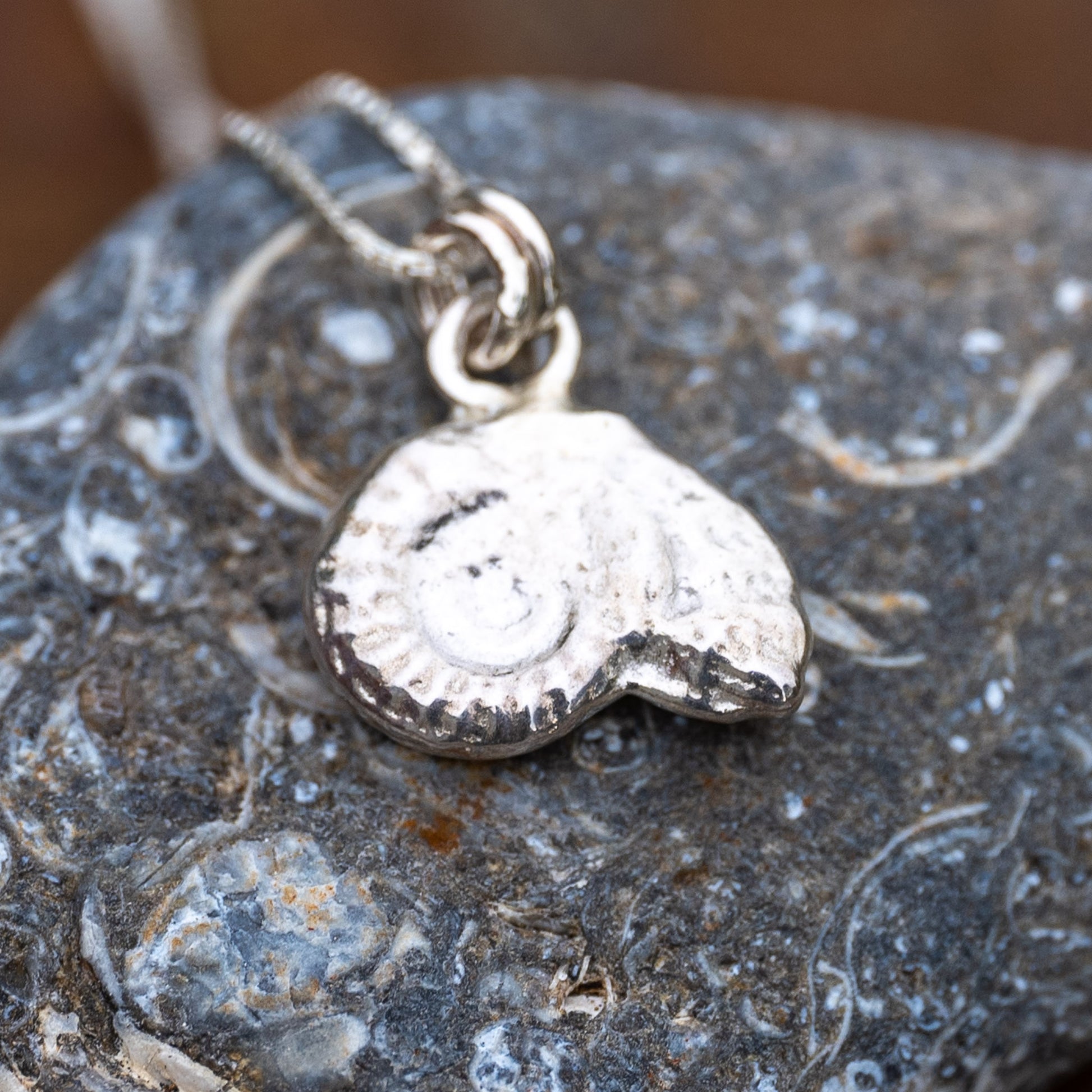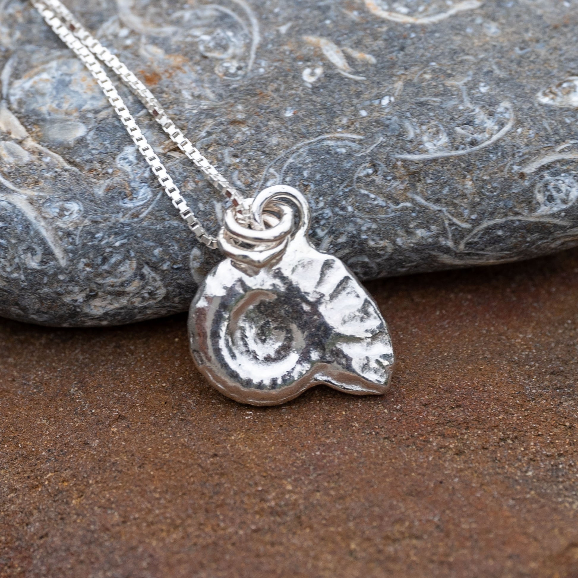 A beautiful ammonite cuttlefish cast pendant, the perfect gift for any beach lover! Made using the ancient cuttlefish casting technique.