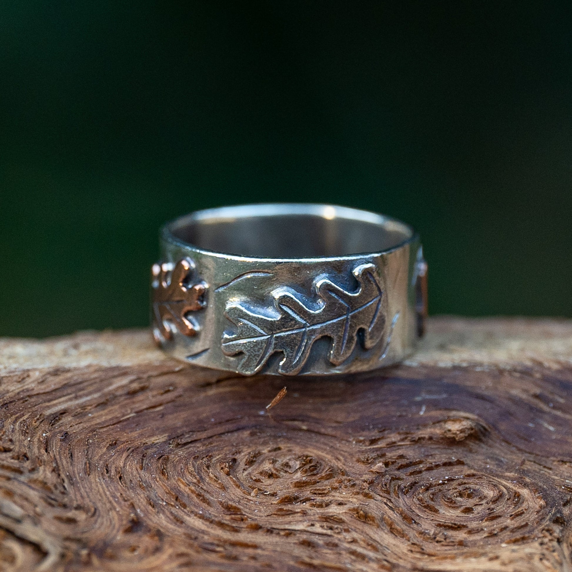 A beautiful Oak Leaf Ring, made with recycled silver and copper. Handmade by myself ⚒ The perfect gift for nature lovers or for people who enjoy treelore. Oxidised to make the leaves stand out ✨ If you would like another size please message me beckywalkerjewellery@outlook.com